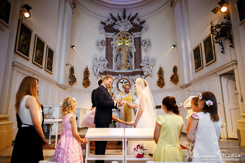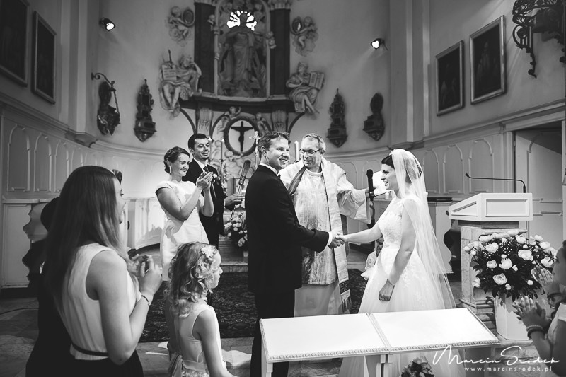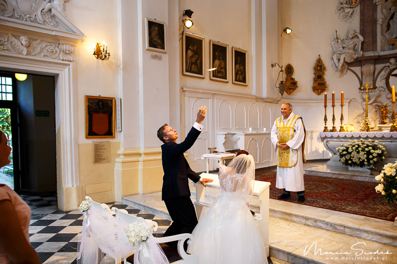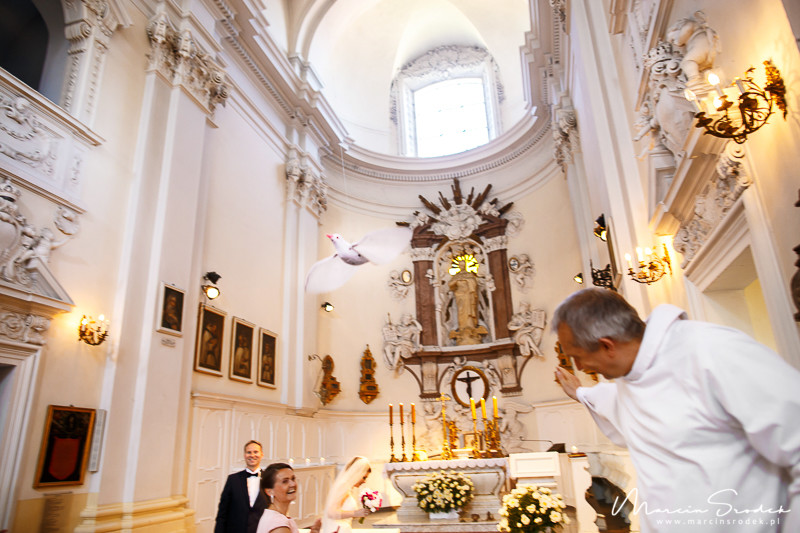 Ceremonii w kościele Niepokalanego Poczęcia NMP w Lasku Bielańskim nie sposób zapomnieć. Niesamowity nastrój, piękny wystrój a na koniec mszy gołąb wypuszczany przez księdza 🙂 Niezwykle emocjonalne przeżycie. Praca z Gosią i Marcinem na sesji plenerowej to była czysta przyjemność. Mnóstwo uśmiechu i śmiechu co nie miara 😀 Sprawdźcie sami. Miłego oglądania.